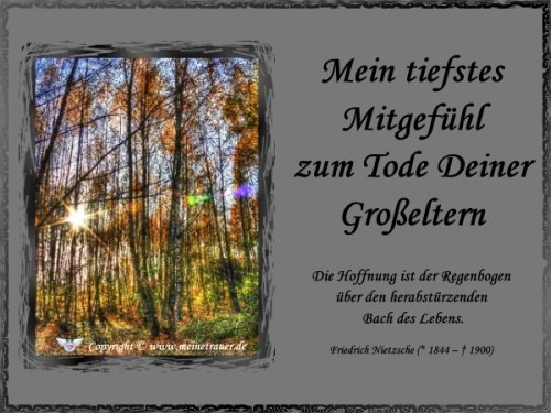 Das Kopieren außerhalb von http://www.meinetrauer.de, weitergeben und verwenden auf eigenen Webseiten oder anderen Medien ist nicht gestattet!