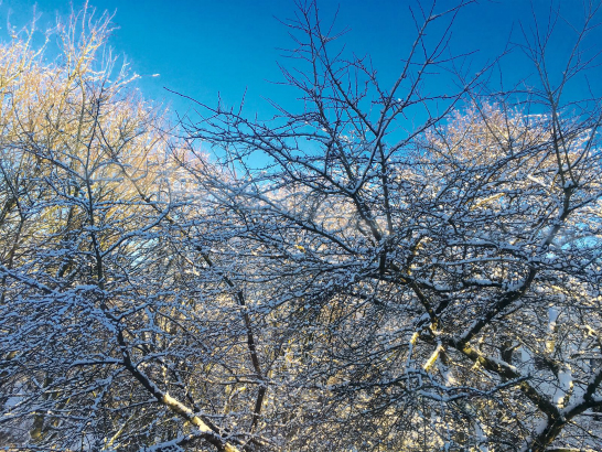 Für deine Mama, ein Blick aus meinem Fenster ......eisige Kälte , aber strahlend blauer Himmel