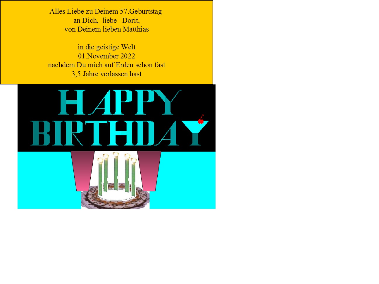 Für deine Dorit zum Geburtstag und für sie und deinen Papa zum Allerheiligen