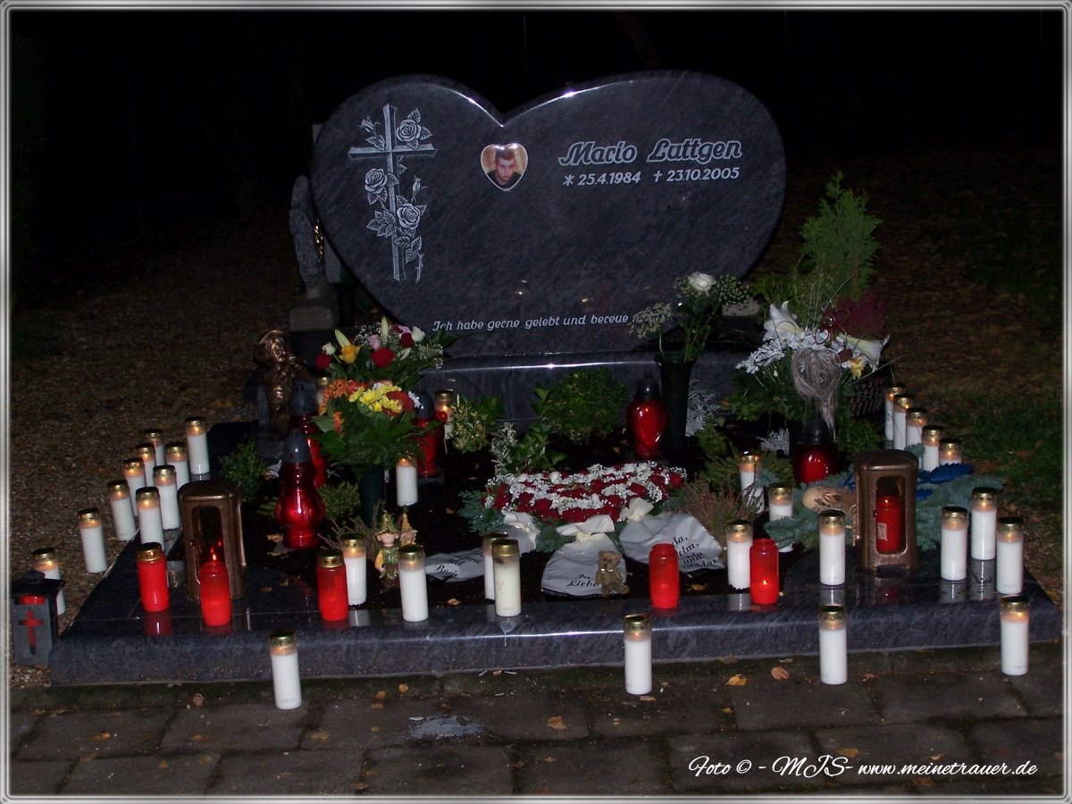 Irgendwann am Abend hat mich meine Mutter geweckt, damit ich eine Kleinigkeit esse. Ich habe mich bei der Beerdigung gegen einen sogenannten „Leichenschmaus“ entschieden. Die engste Familie ging zu Marios Oma. Am Abend nahm ich noch ein paar Kerzen und fuhr zum Grab. Bei Kerzenschein stand ich da und konnte immer noch nicht begreifen, was die letzten Tage passiert ist.
