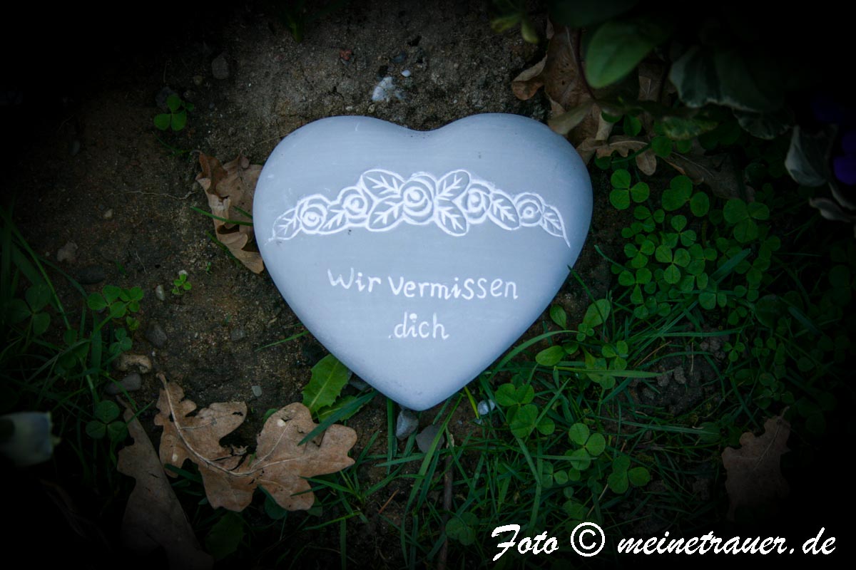 Am ersten Todestag bekam er eine Schale in Herzform, gefüllt mit Rosen, auf sein Grab. Danach einen Strauß oder eine Pflanzschale.