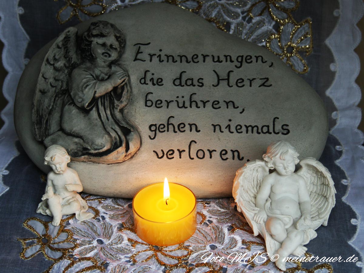 In der Regionalzeitung hier ist eine Gedenkseite möglich, dort ist die Annonce hinterlegt, man kann ein Foto des Verstorbenen hochladen, einen persönlichen Hintergrund auswählen und virtuelle Kerzen mit kleinen Botschaften einsetzen - dort bin ich eigentlich täglich einmal und zu den besonderen Tagen zünde ich Gedenkkerzen an oder lade neue Fotos hoch.